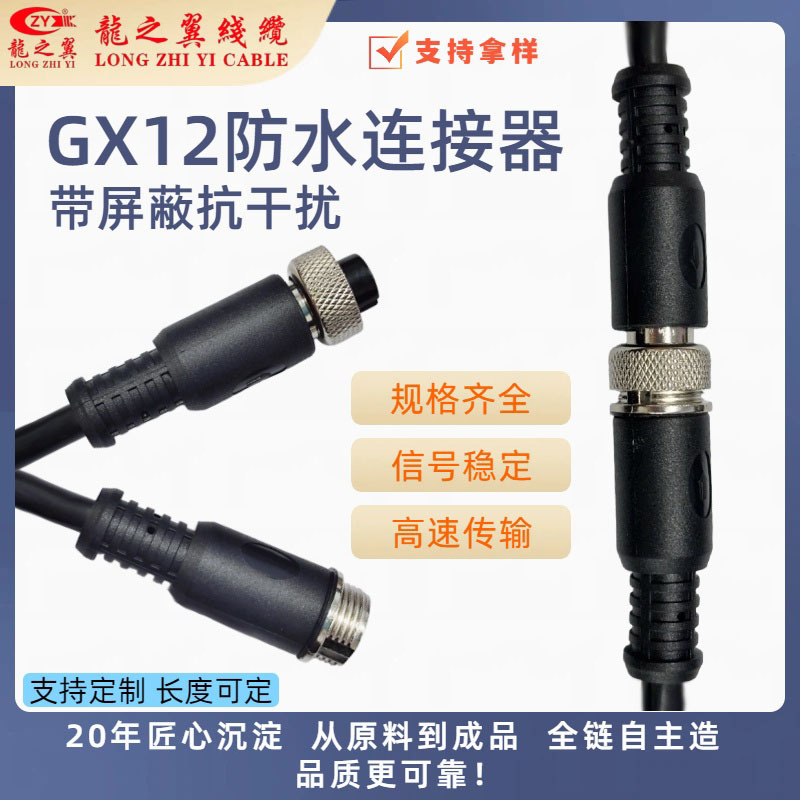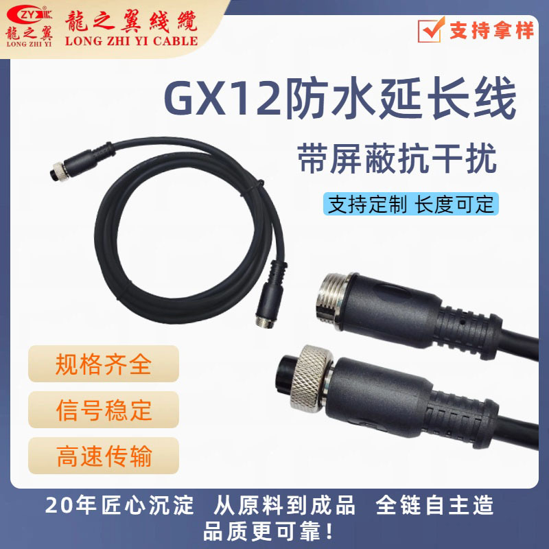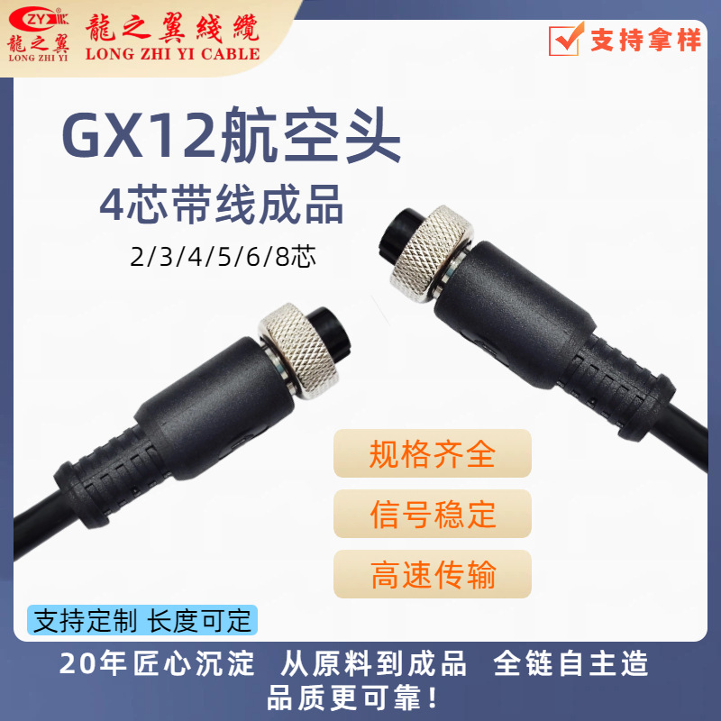 GX12航空插头带线4芯屏蔽线连接线车载监控用信号抗干扰传感器用