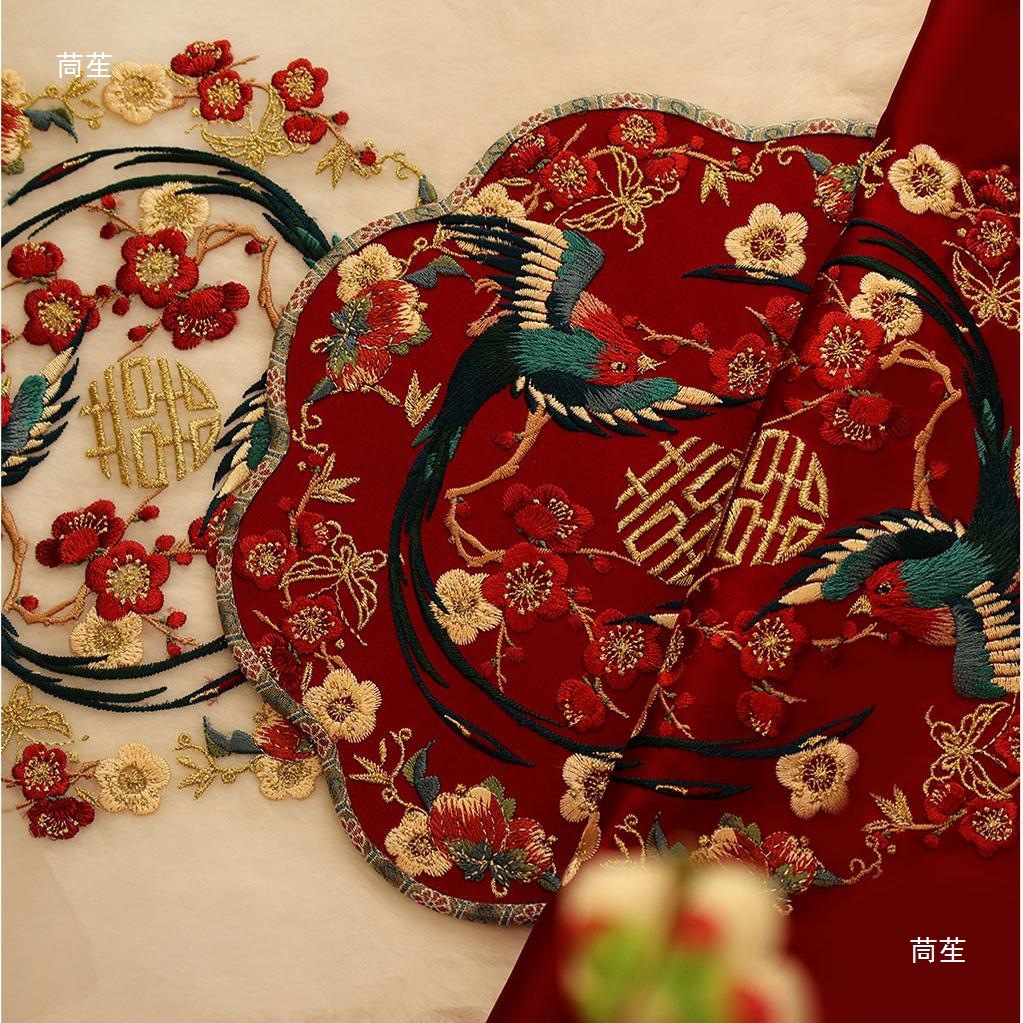 【喜上梅梢】婚扇团扇口金包diy材料绣花片喜庆手工礼物