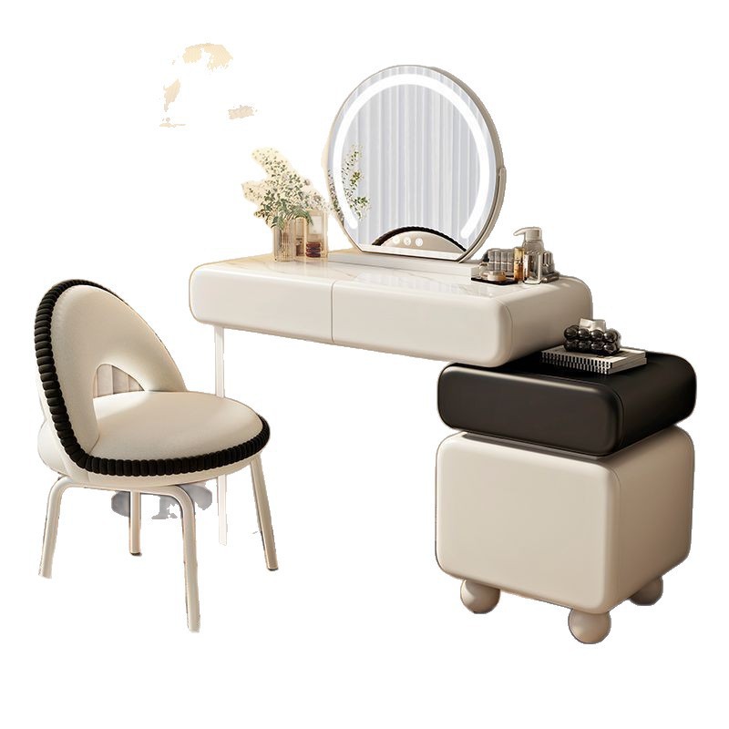 | 颜色 | YB-06白色柜子 、104.4桌+柜+无凳无镜(可换色) | 颜色 | YB-06黑白色柜子 、64.4桌+柜+智能半圆镜+格格凳 |
