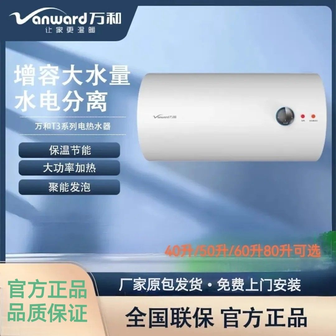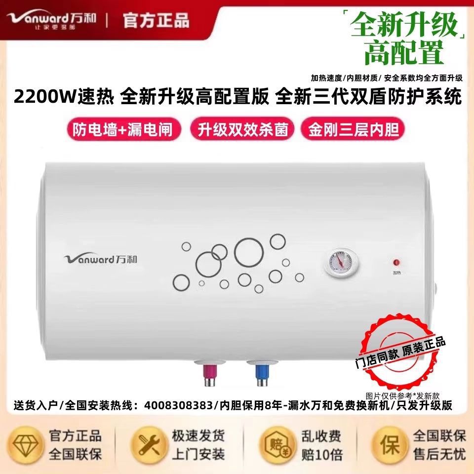 万和电热水器家用60升50/40升T3加长防电墙漏电警示2200W节能速热