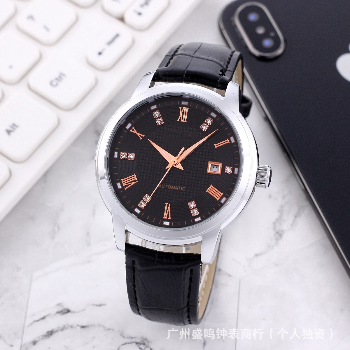 浪家新款男士简约机械手表商务带日历大气休闲皮带男士腕表代发批