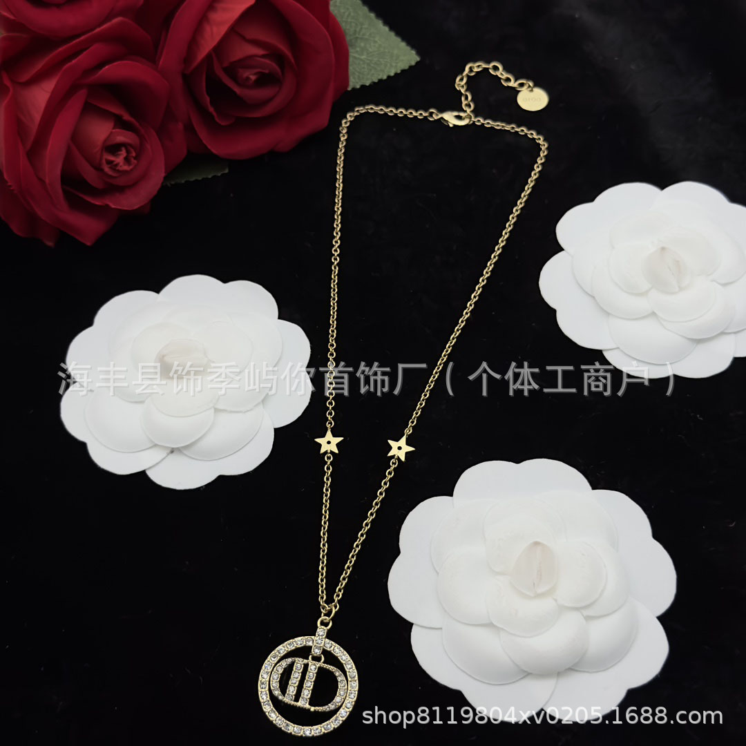 迪家/D家新款CD字母猪鼻子镶嵌水钻项链复古简约经典款式黄铜材质