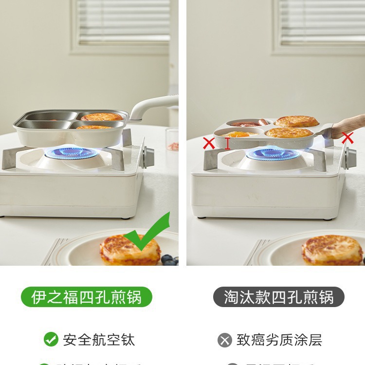 陶瓷早餐锅煎饼鸡蛋汉堡平底不粘锅家用四孔煎蛋肉蛋堡锅具