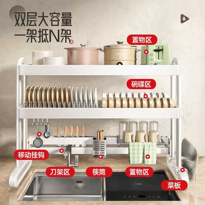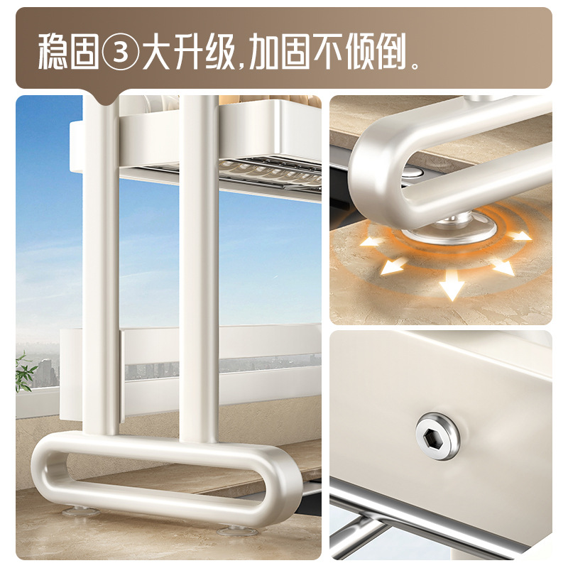 | 价格段 | 50-60元 | 层数(规格) | 可可白【不锈钢双层75cm】刀架+筷筒+砧板架+展板架+挂钩*4+脚垫*4 |