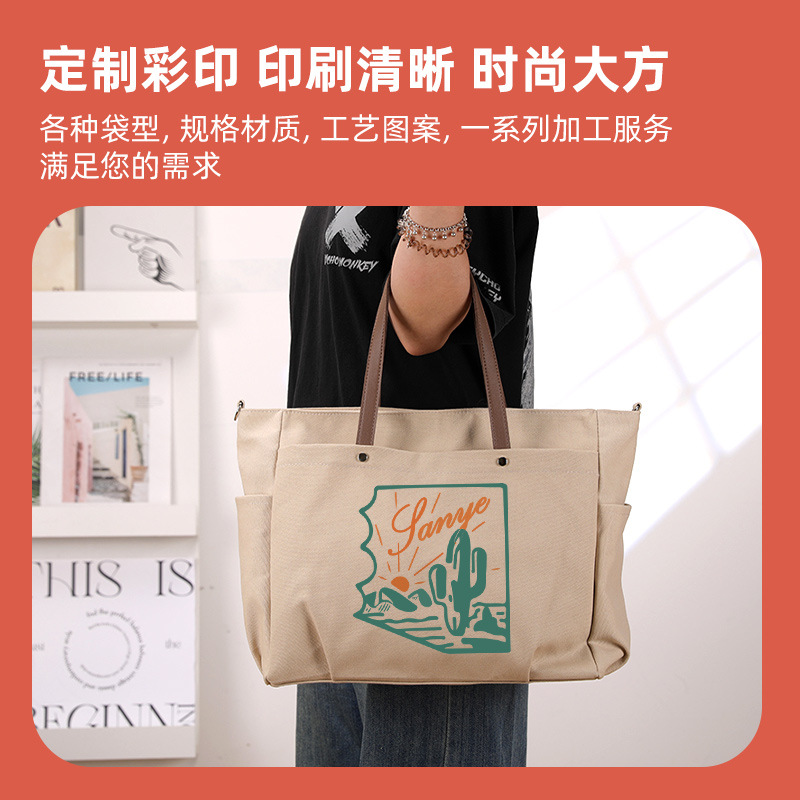 厂家批发加厚帆布手提包大容量款女士单肩包简约款可加印logo图案