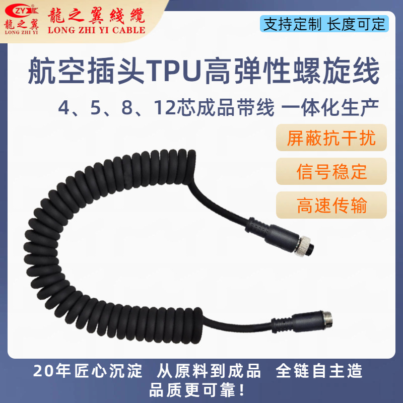 高弹性TPU弹簧线gx12插座螺旋线带线防水屏蔽工业机器连接线插头