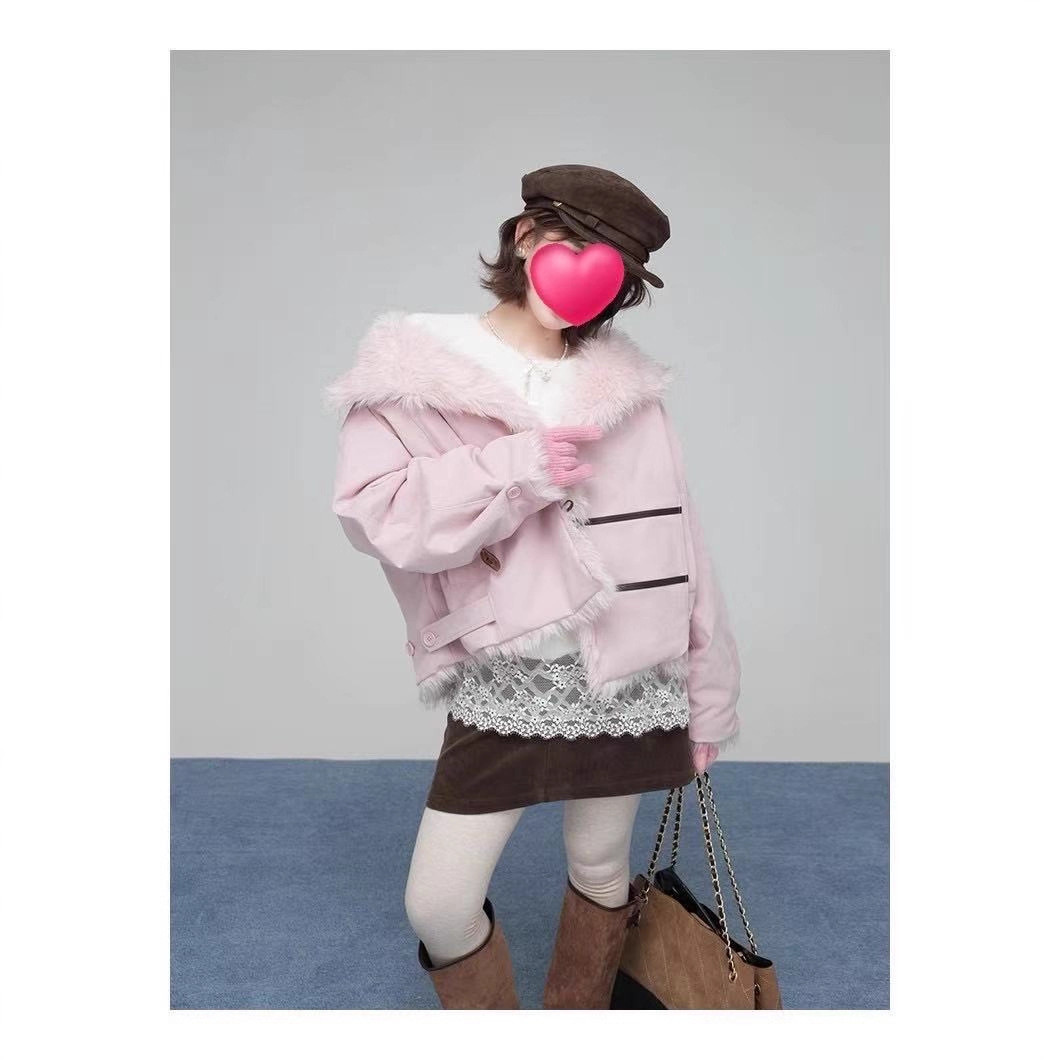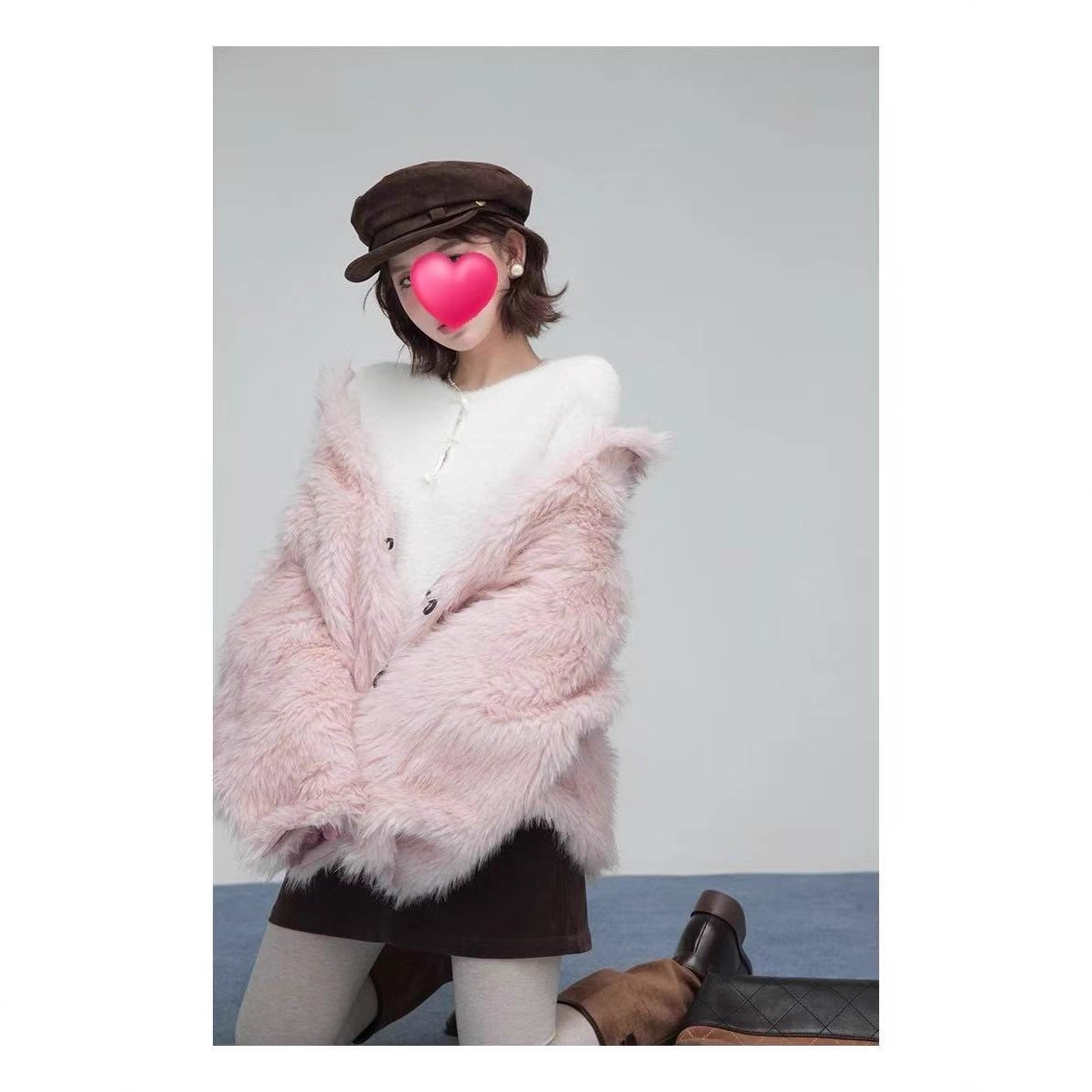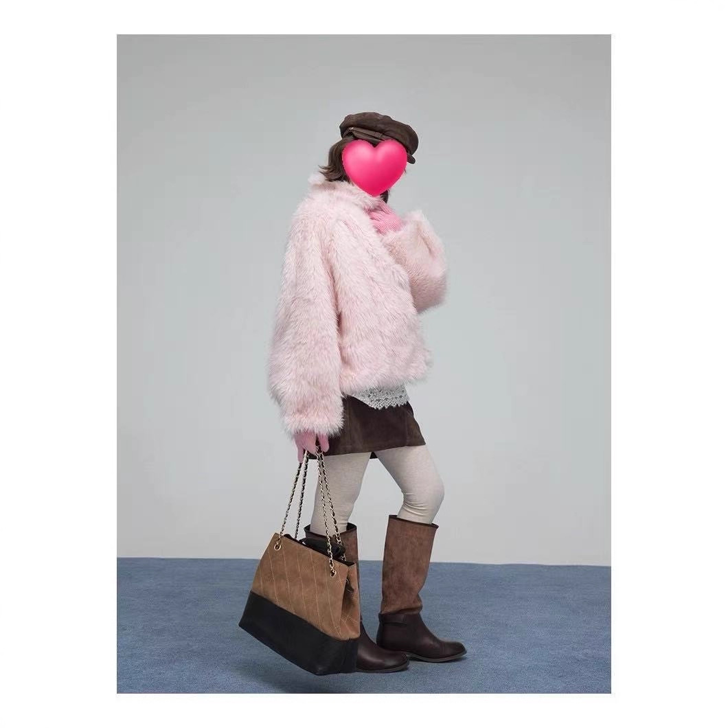 小个子 粉绒绒两面派~ 气质对扣双面穿夹克毛毛短外套