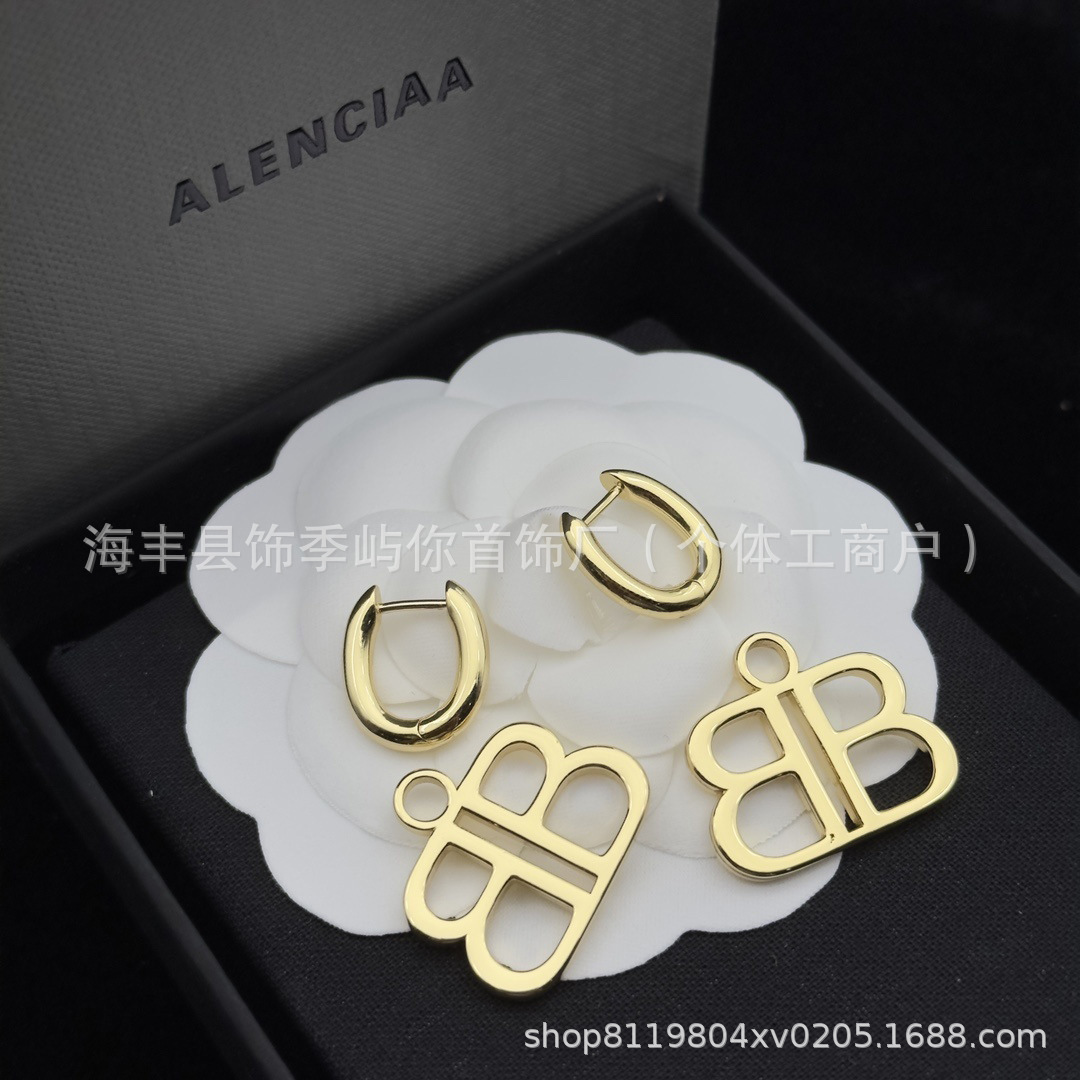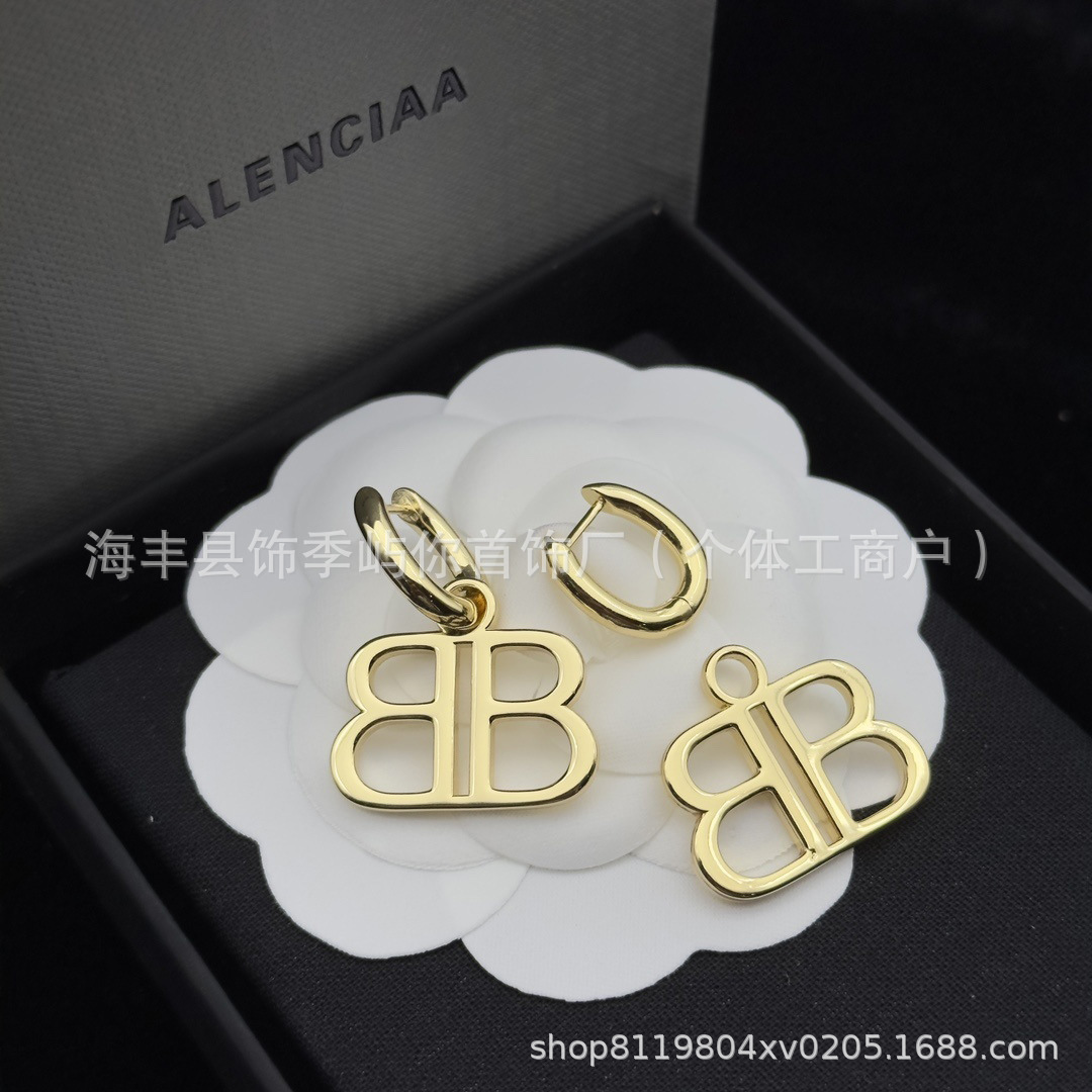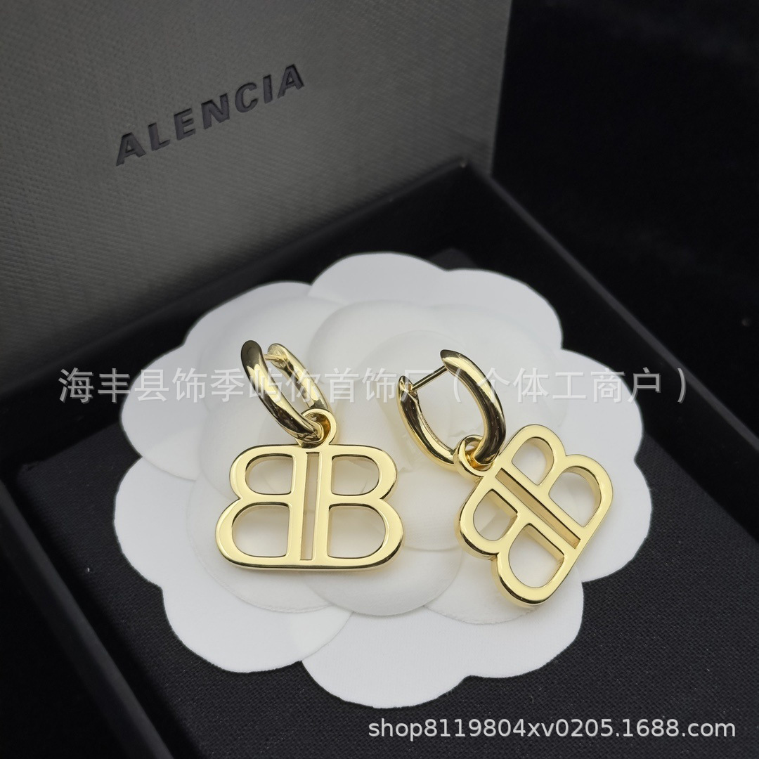 BB字母耳环巴黎家B字吊坠黄铜复古风轻奢s925银针耳钉ins耳饰女