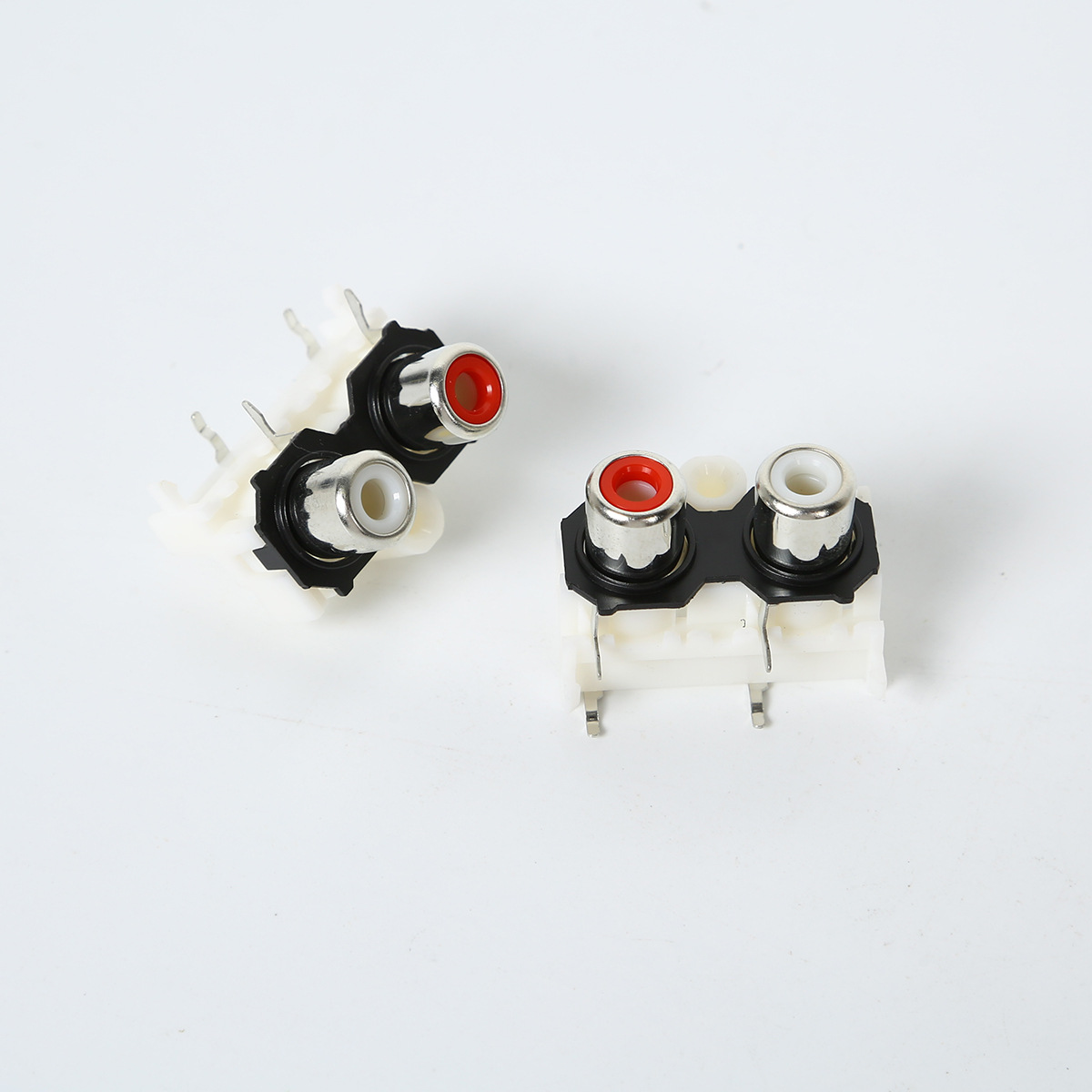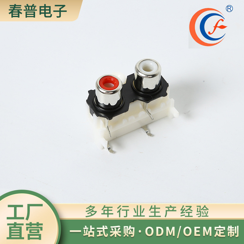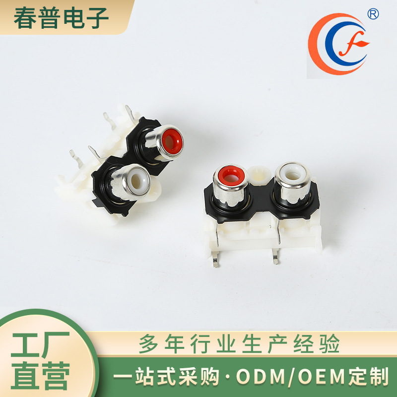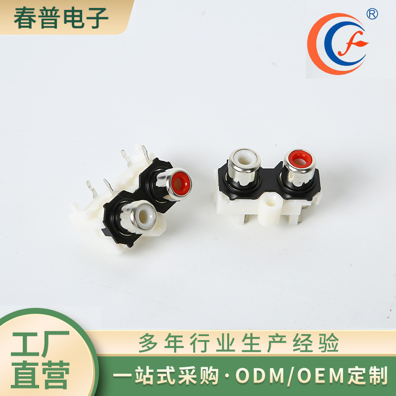 现货2孔AV莲花插座RCA白黑插座音频音响插座AV2-8.4-14立式莲花座