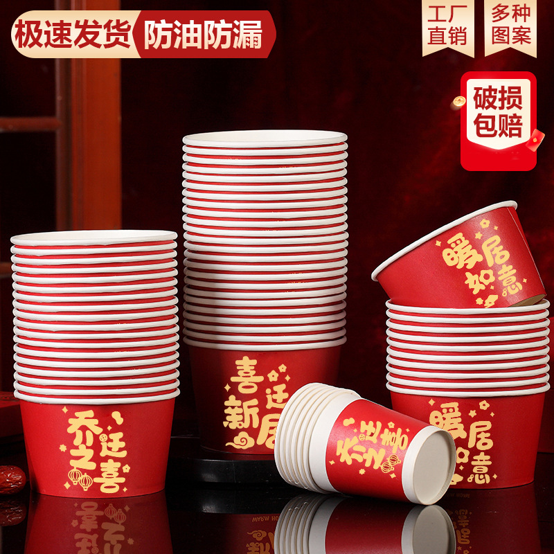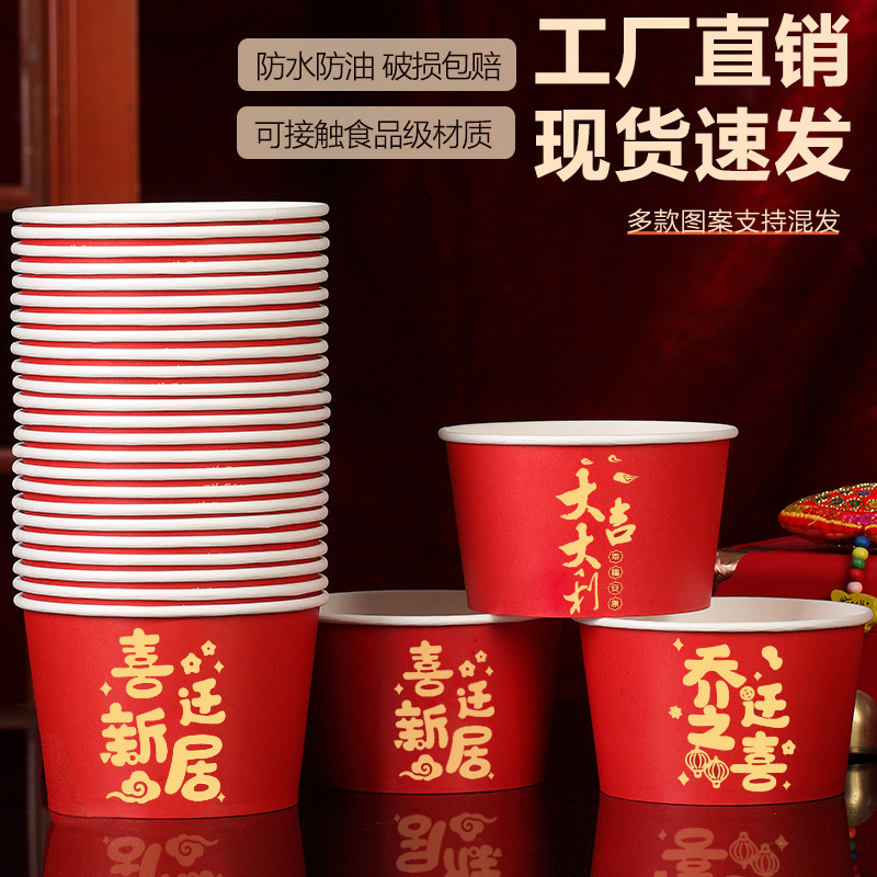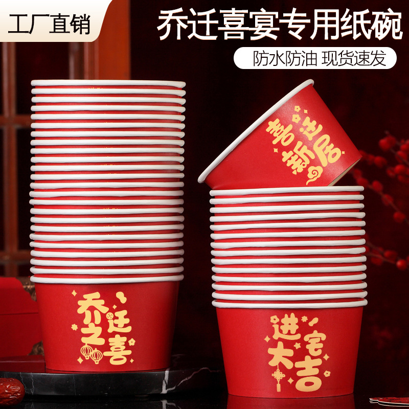 一次性纸碗纸杯筷勺子餐具套装乔迁之喜酒席红色加厚新居搬家入伙