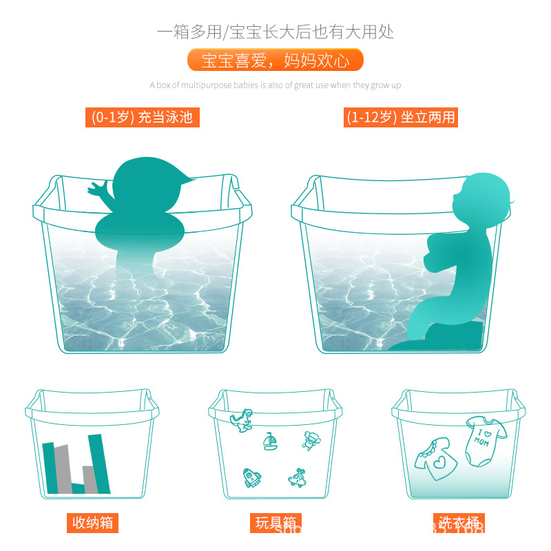 德国2026新款小号左右折叠加厚小孩泡澡桶浴缸儿童游泳塑料淋浴桶