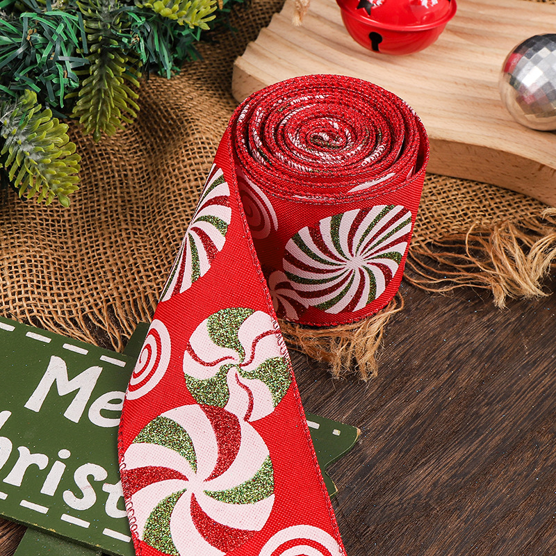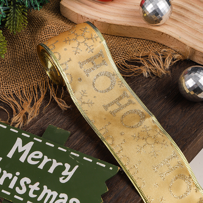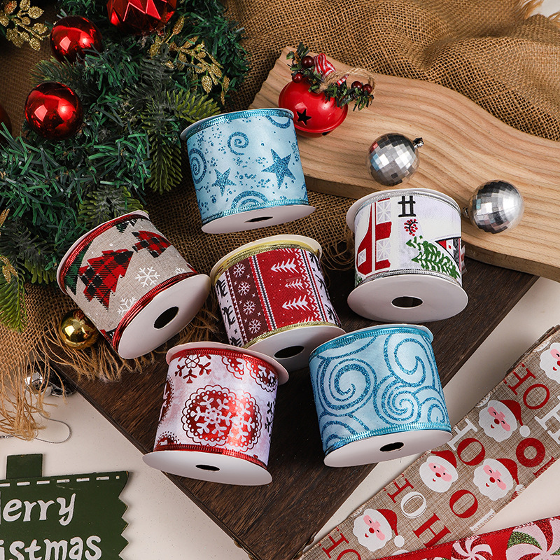 跨境新款圣诞节织带创意印花DIY 湖蓝色礼物绑带鲜花装饰氛围布置