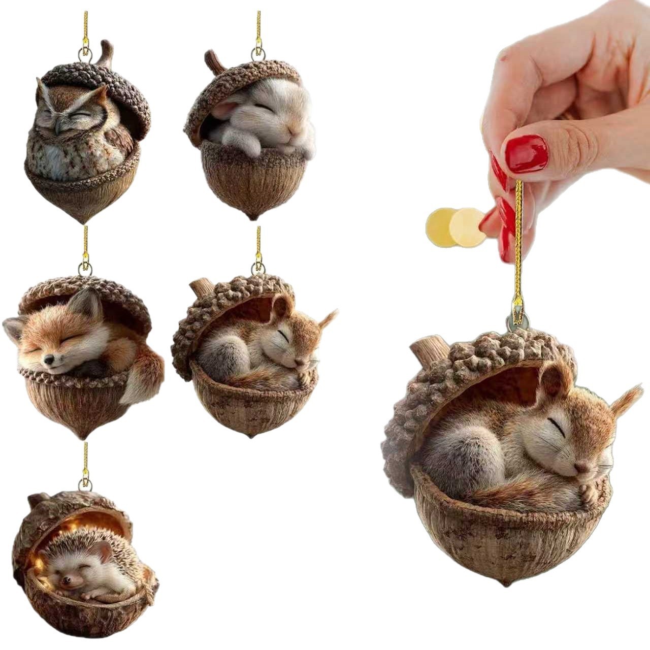 新品跨境乡村花园木质松鼠挂件外贸工艺品微景观创意仿真装饰
