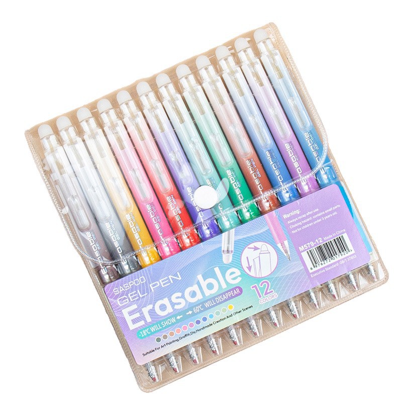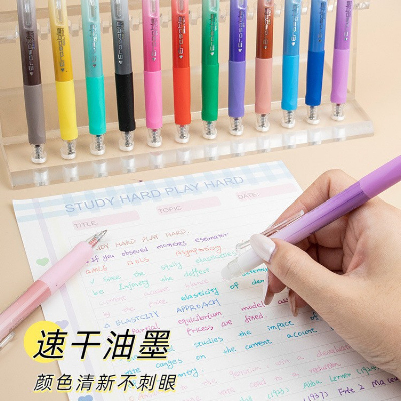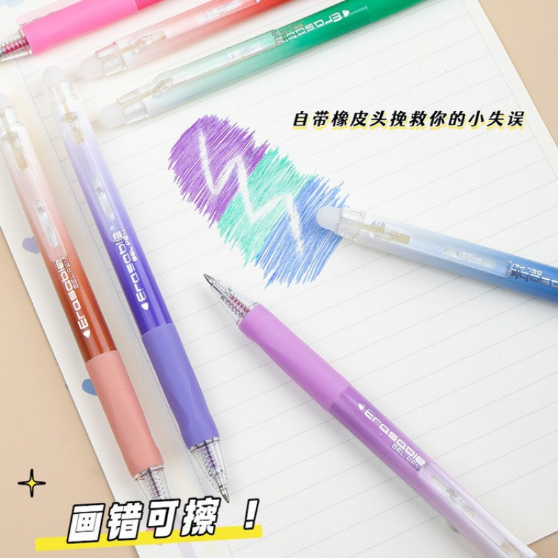 跨境新款彩色按压式可擦中性笔学生专用绘画彩色水笔女生高颜值
