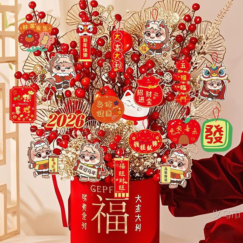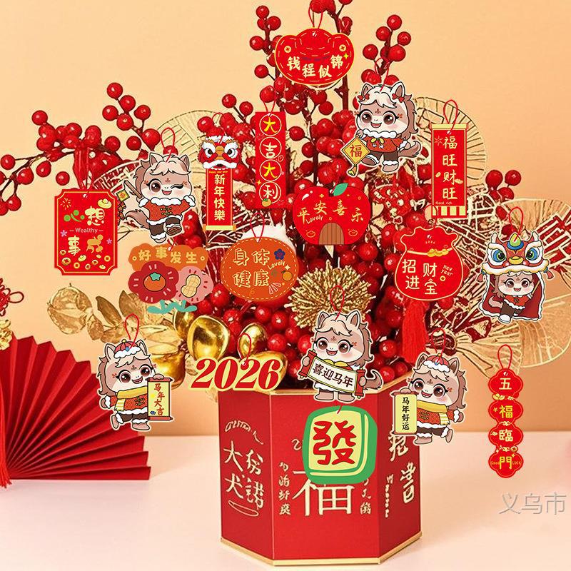 2026新年装饰小挂件马年春节盆景绿植吊牌贺年发财树树上挂饰吊饰
