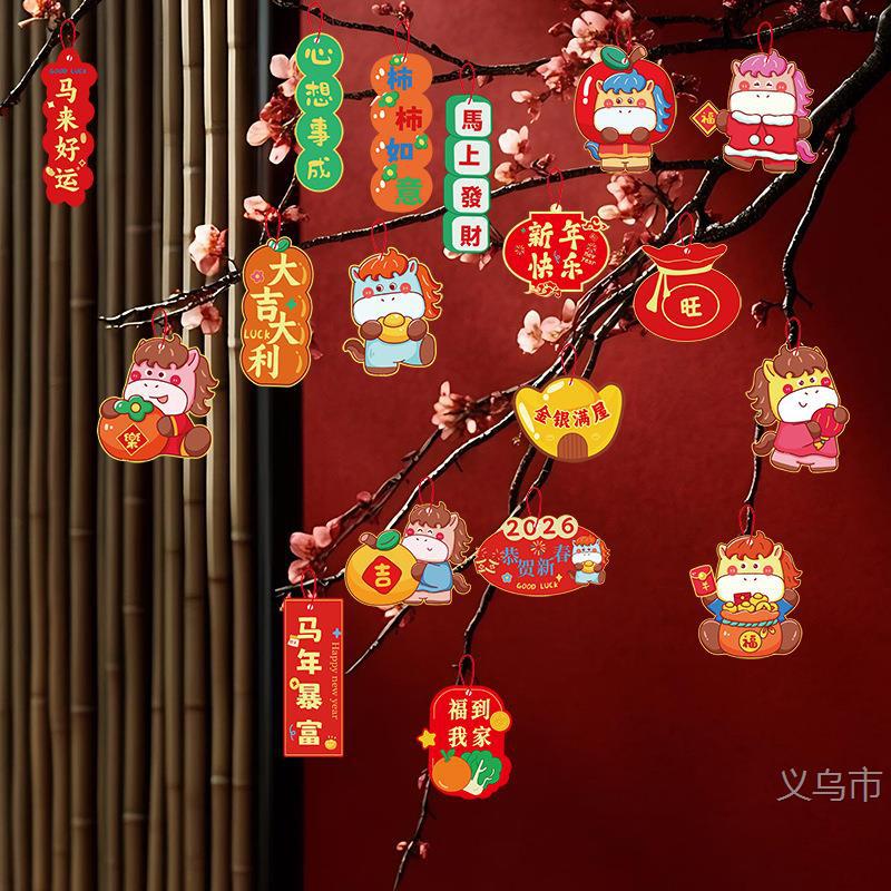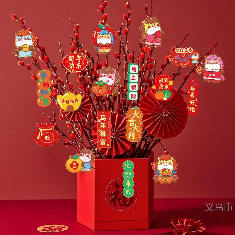 2026新年绿植挂件过年贺年装饰小挂件发财树盆栽吊牌春节氛围布置