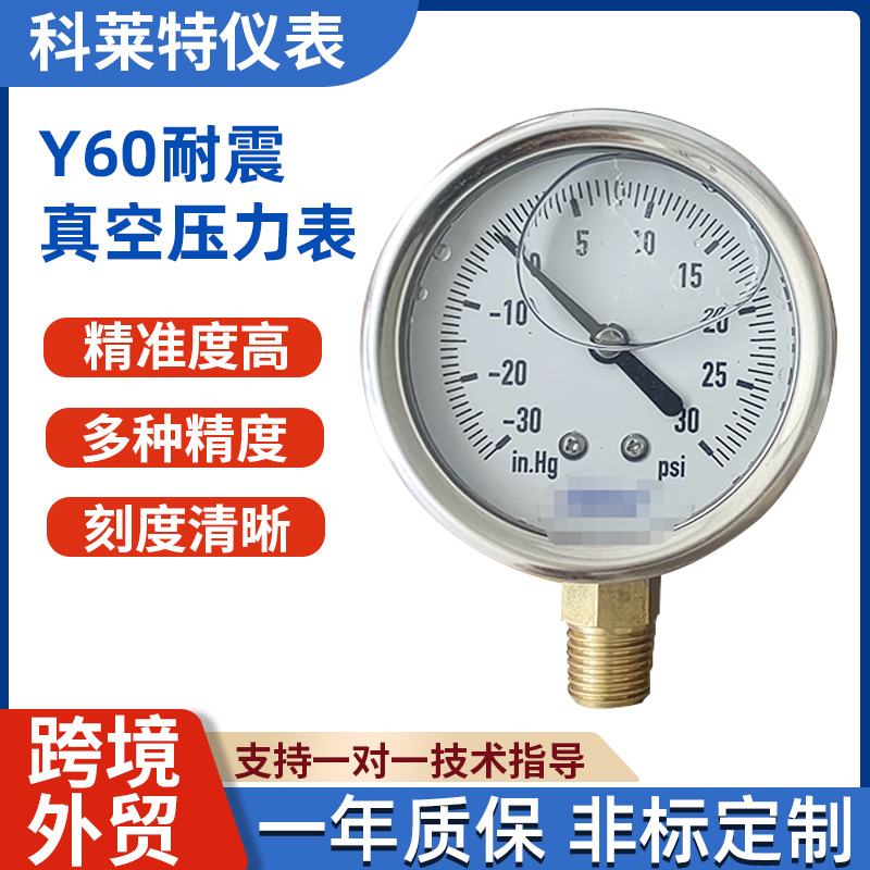 跨境Y60耐震真空正负压压力表-30-30mpa不锈钢真空制冷压力表现货