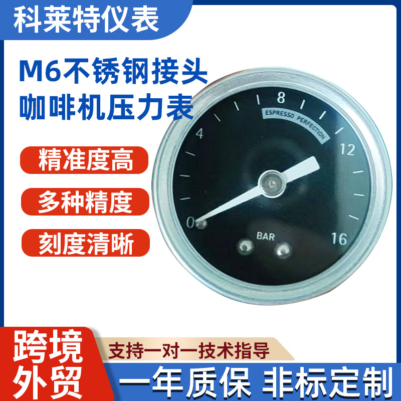 M6螺纹不锈钢接头咖啡机压力表 Y40商用轴向防抖动蒸汽气压水压表