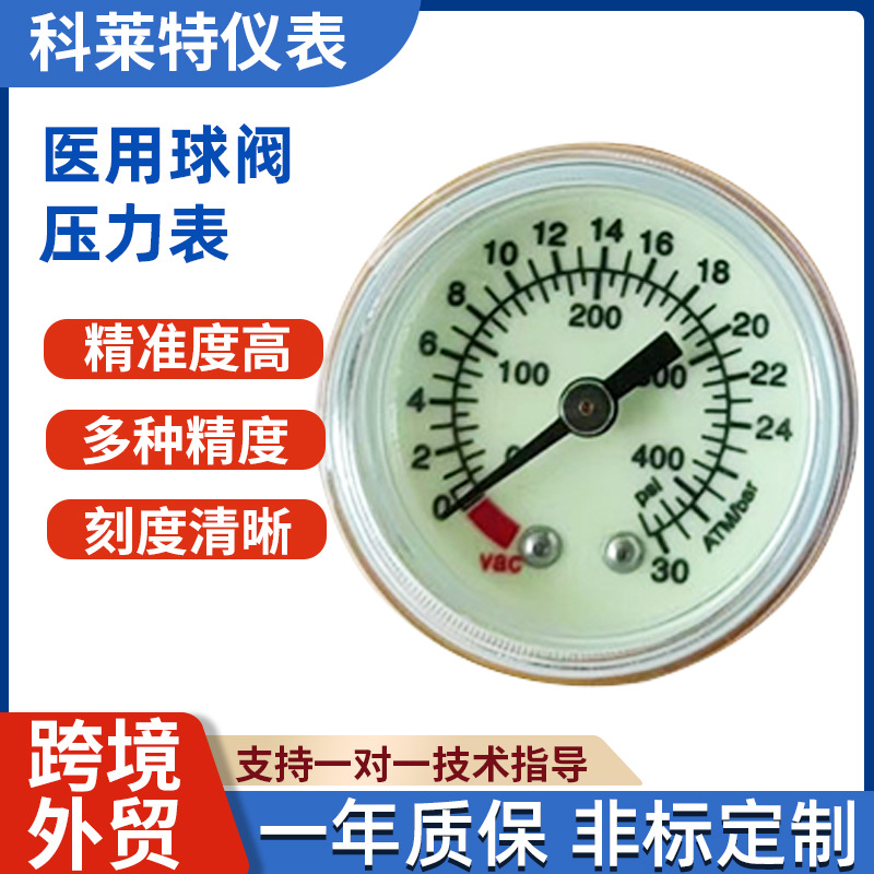 30ATM一次性球阀扩充扩张压力泵压力表 Y40医用医疗压力表10*0.75