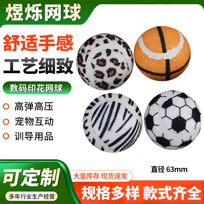 厂家供应63MM数码印花网球篮球足球豹纹斑马花色球可定 制加工