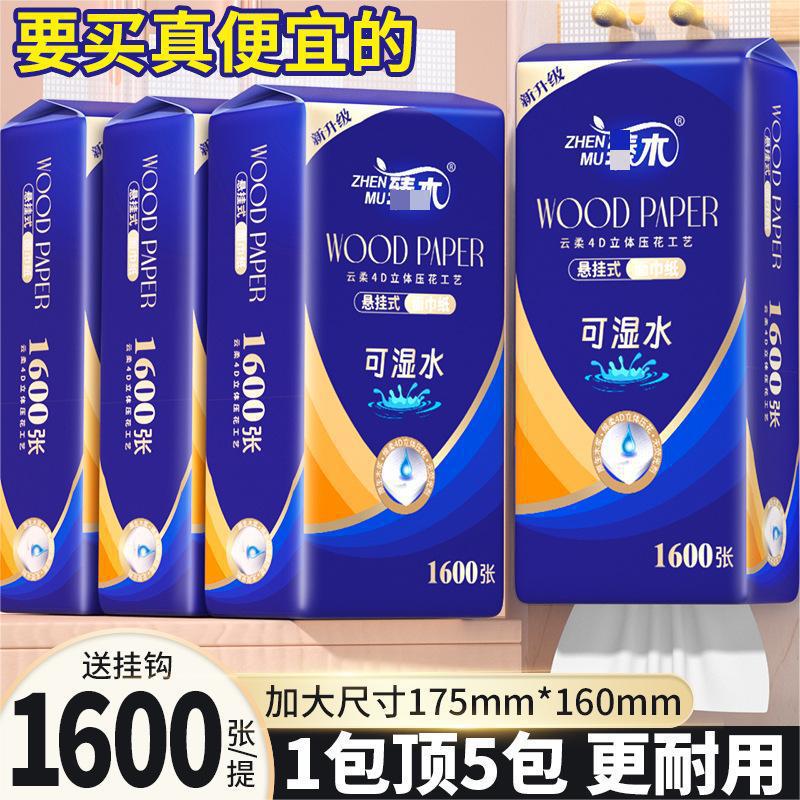 臻木1600张悬挂式纸巾加量装抽纸家用餐巾原木纸面巾纸批发卫生纸