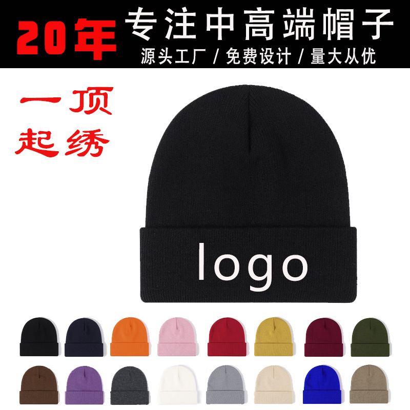 冬季新款保暖针织毛线帽子定制LOGO刺绣显脸小时尚套头帽护耳帽子