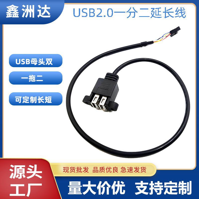 USB2.0端子双口usbDU10pc充电线数据线电脑连接线连接器双口母座