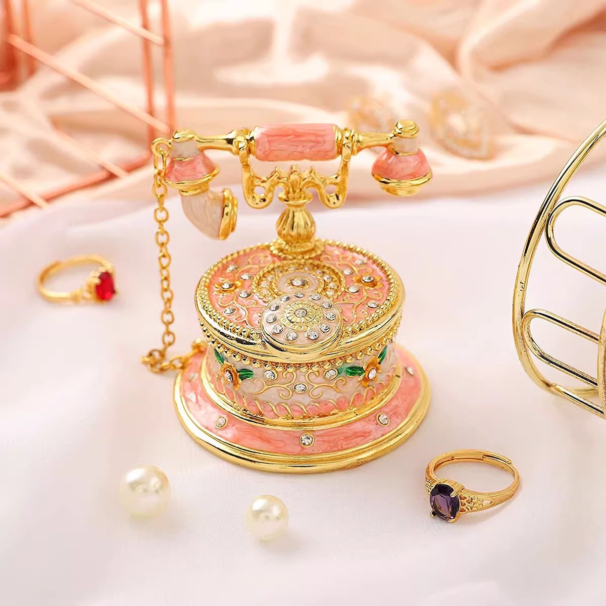 珐琅复古电话机外贸工艺品首饰盒家居梳妆台收纳戒指小摆件