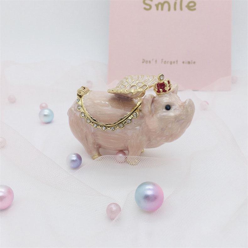 珐琅彩首饰盒外贸礼品摆件金属工艺品创意收纳盒皇冠小飞猪饰品盒