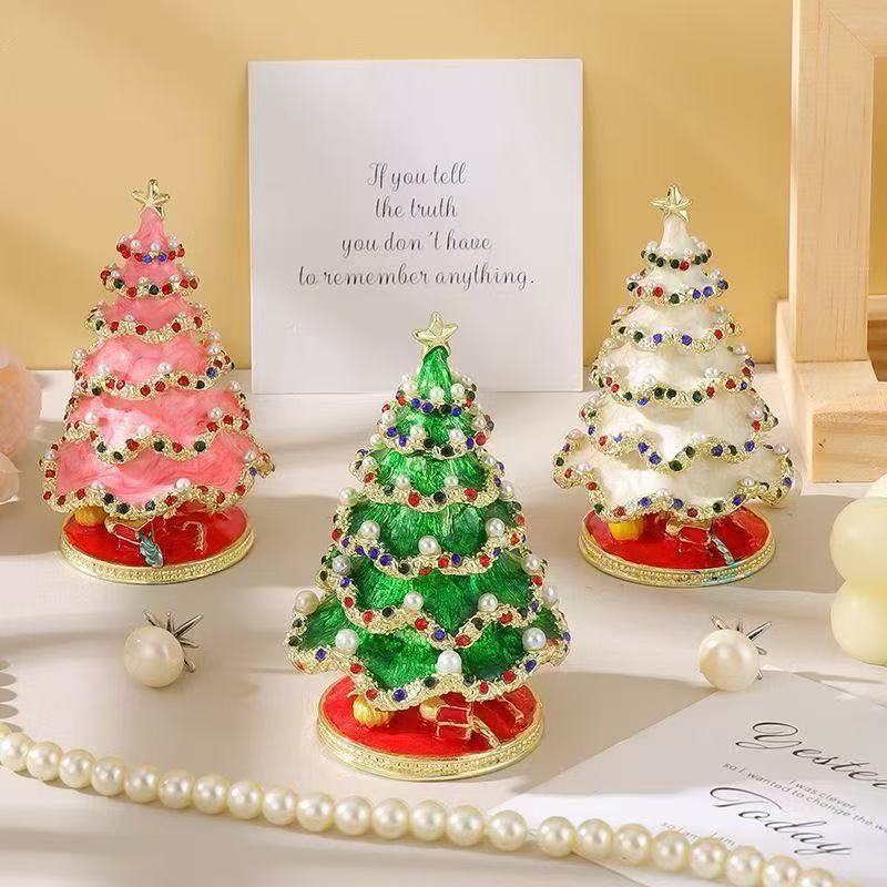 珐琅彩圣诞树首饰盒礼品戒指项链饰品收纳盒合金工艺品摆件批发