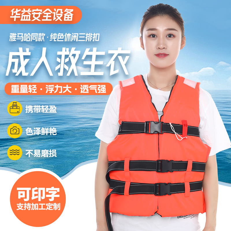 纯色休闲三排扣成人救生衣钓鱼漂流海面救生马甲便携雅马哈救生衣