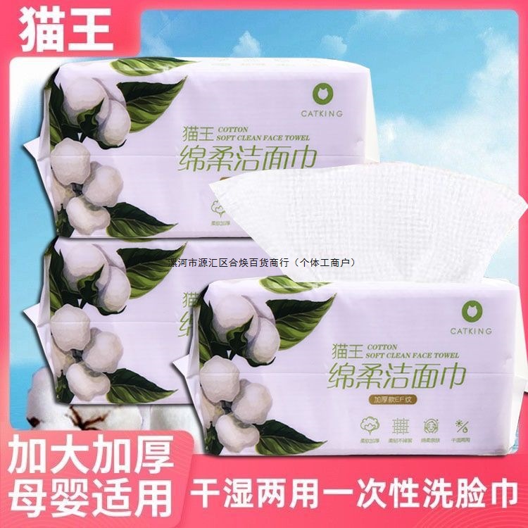 猫王洗脸巾一次性洁面巾婴儿绵柔巾美容院干湿两用加厚化妆卸妆巾