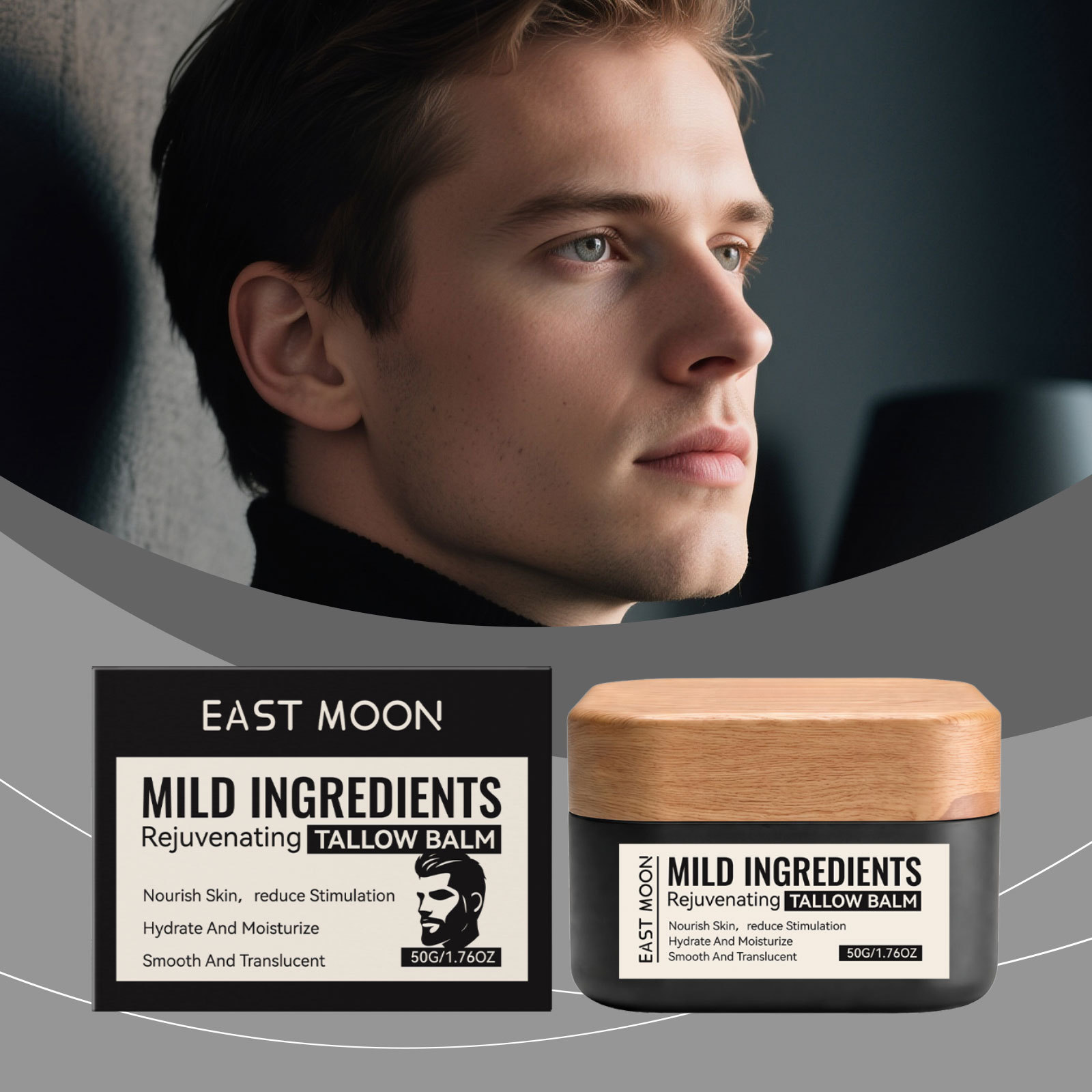 海外EAST MOON 男士面部保湿霜 温和成分细腻顺滑易推开弹嫩细腻