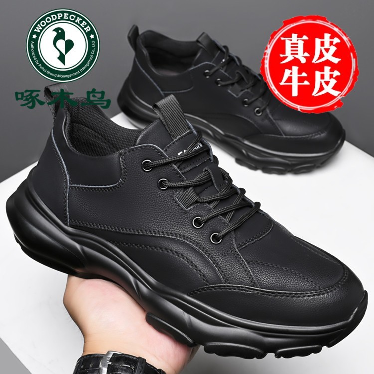 啄木鸟男鞋2025新款真皮运动休闲鞋增高潮流百搭皮鞋男冬季棉鞋子