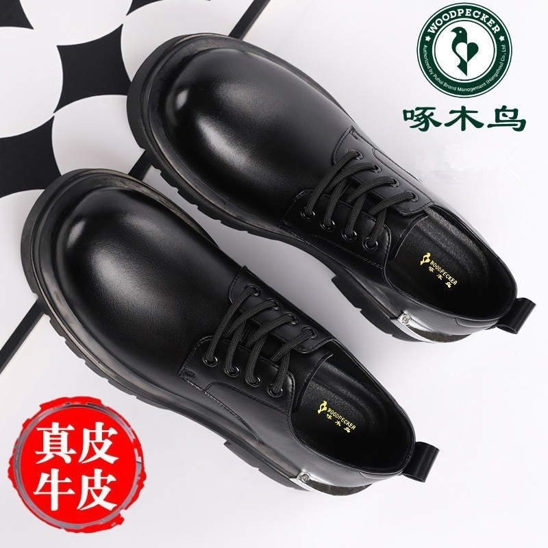 啄木鸟男鞋英伦风德比鞋男士厚底增高真皮大头鞋软底商务休闲皮鞋