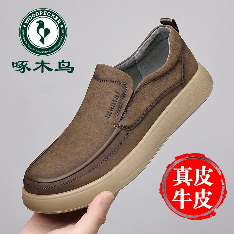 啄木鸟男鞋真皮商务休闲皮鞋男士软底透气轻便爸爸鞋一脚蹬豆豆鞋