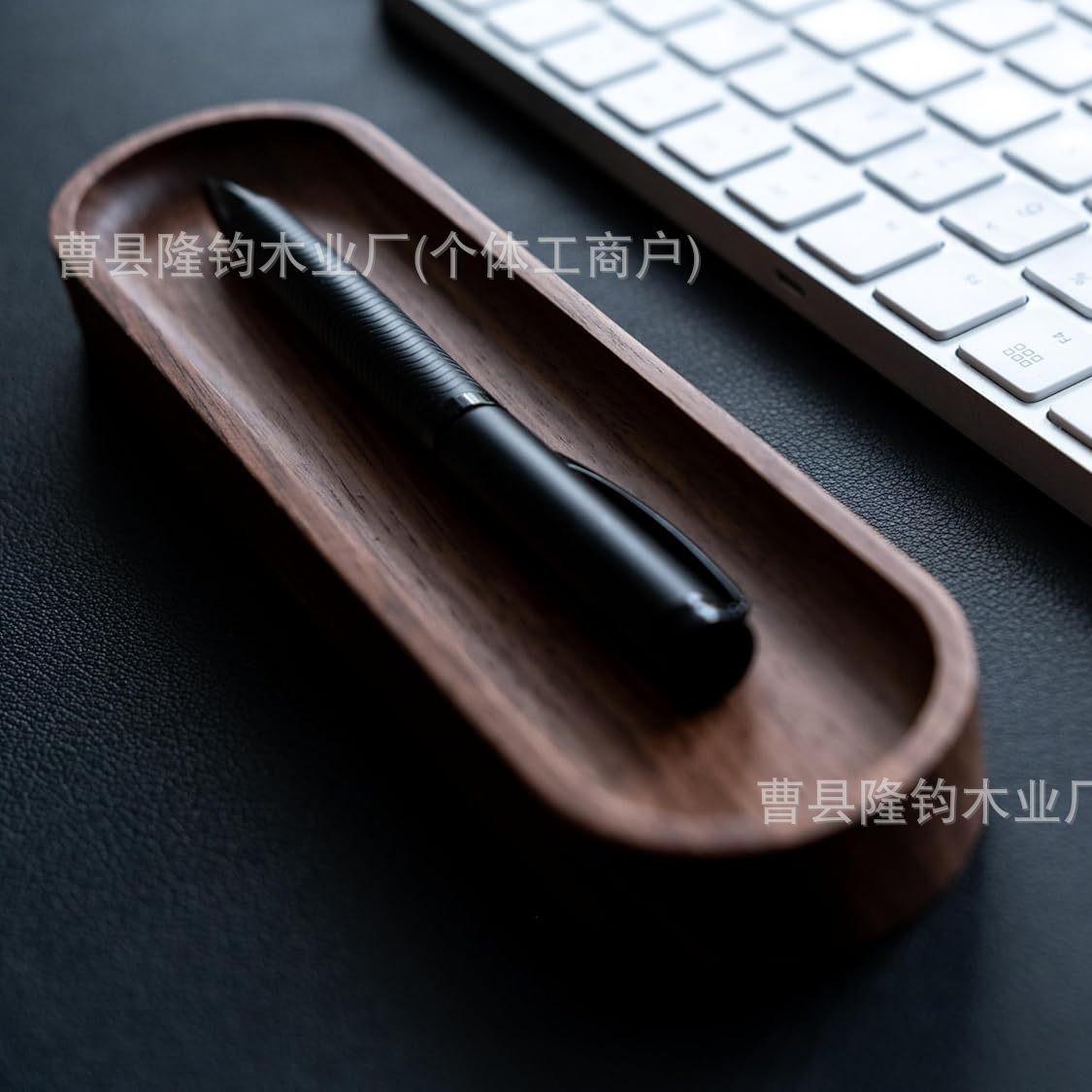 黑胡桃木收纳托盘带磁扣文具盒实木桌面首饰收纳盒木质笔盒眼镜盘