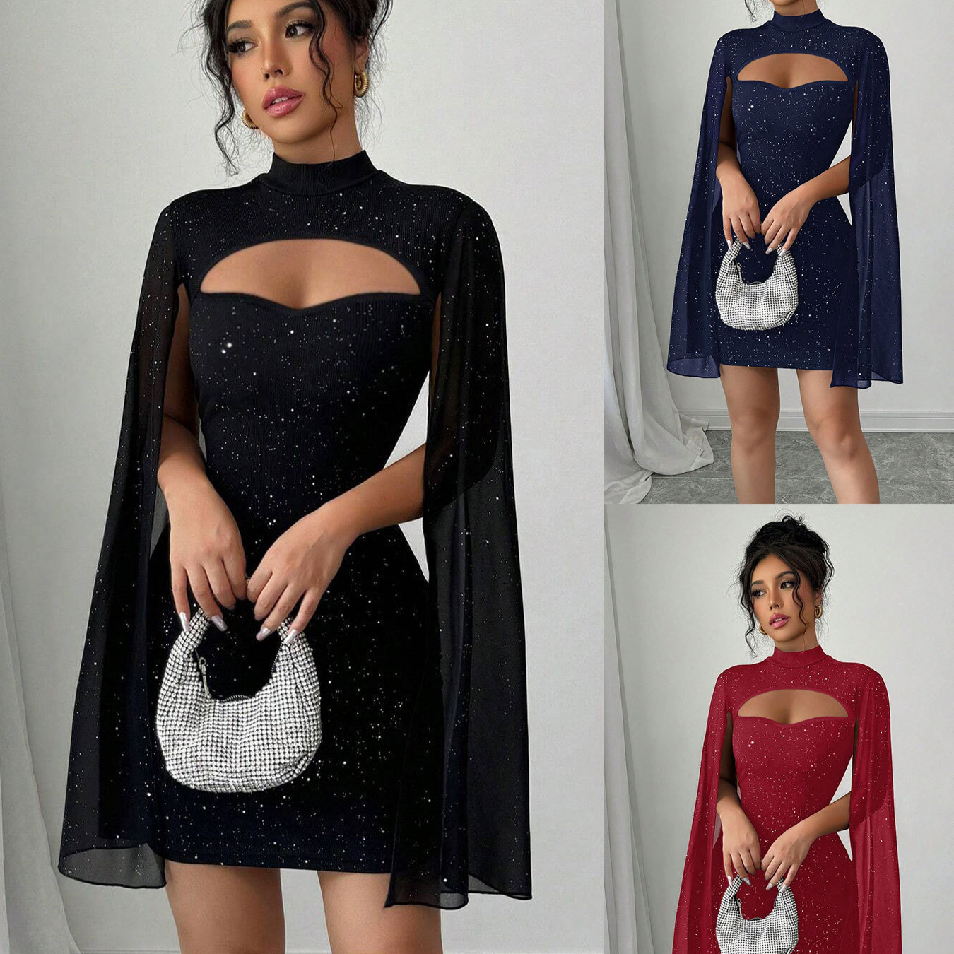 亚马逊跨境欧美外贸女装设计感聚会高级感包臀裙早秋新款连衣裙