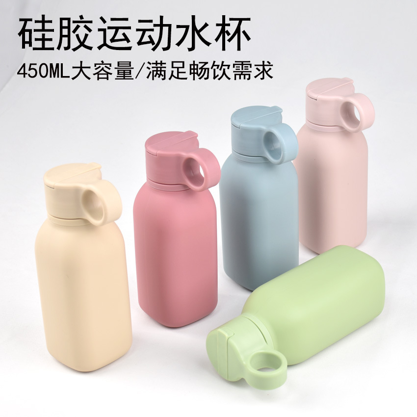 硅胶运动水杯食品级吸管杯 户外折叠杯子 儿童杯水壶便携水瓶