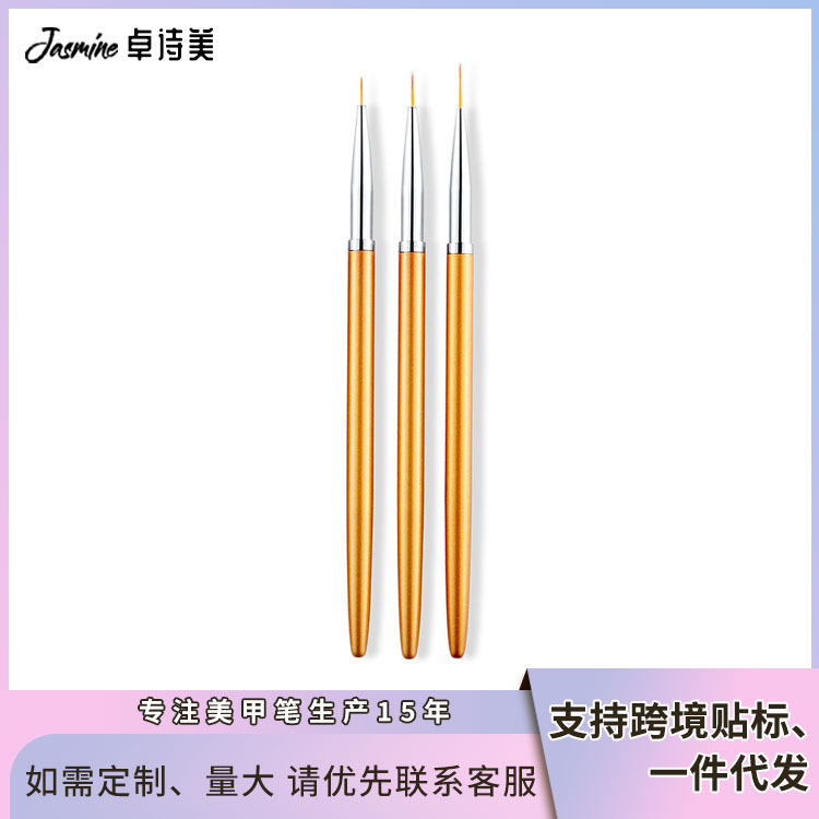 美甲笔三支装金属杆画花拉线笔指甲刷勾线彩绘笔美甲笔刷勾边涂鸦
