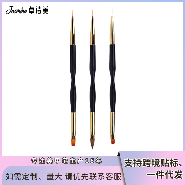 跨境双头两用美甲光疗笔彩绘笔平头圆头水晶笔笔刷套装双头美甲笔