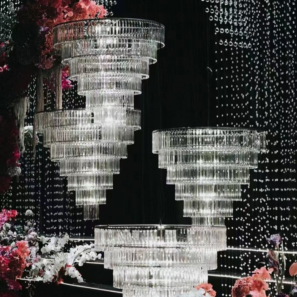 婚庆多层亚克力水晶冰条灯吊灯酒店婚礼吊顶挂件舞台布置路引道具