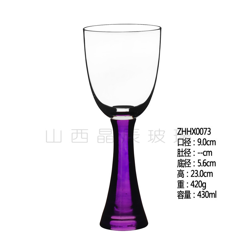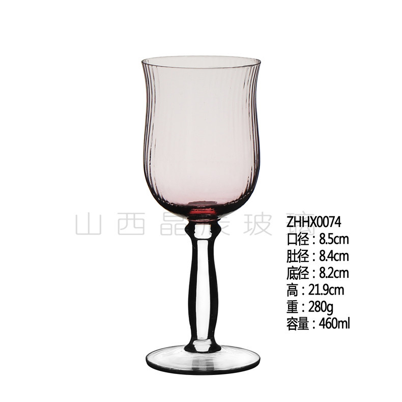 人工吹制16oz红酒杯 460ml水晶红酒杯竖纹色料接杯杆高脚香槟杯