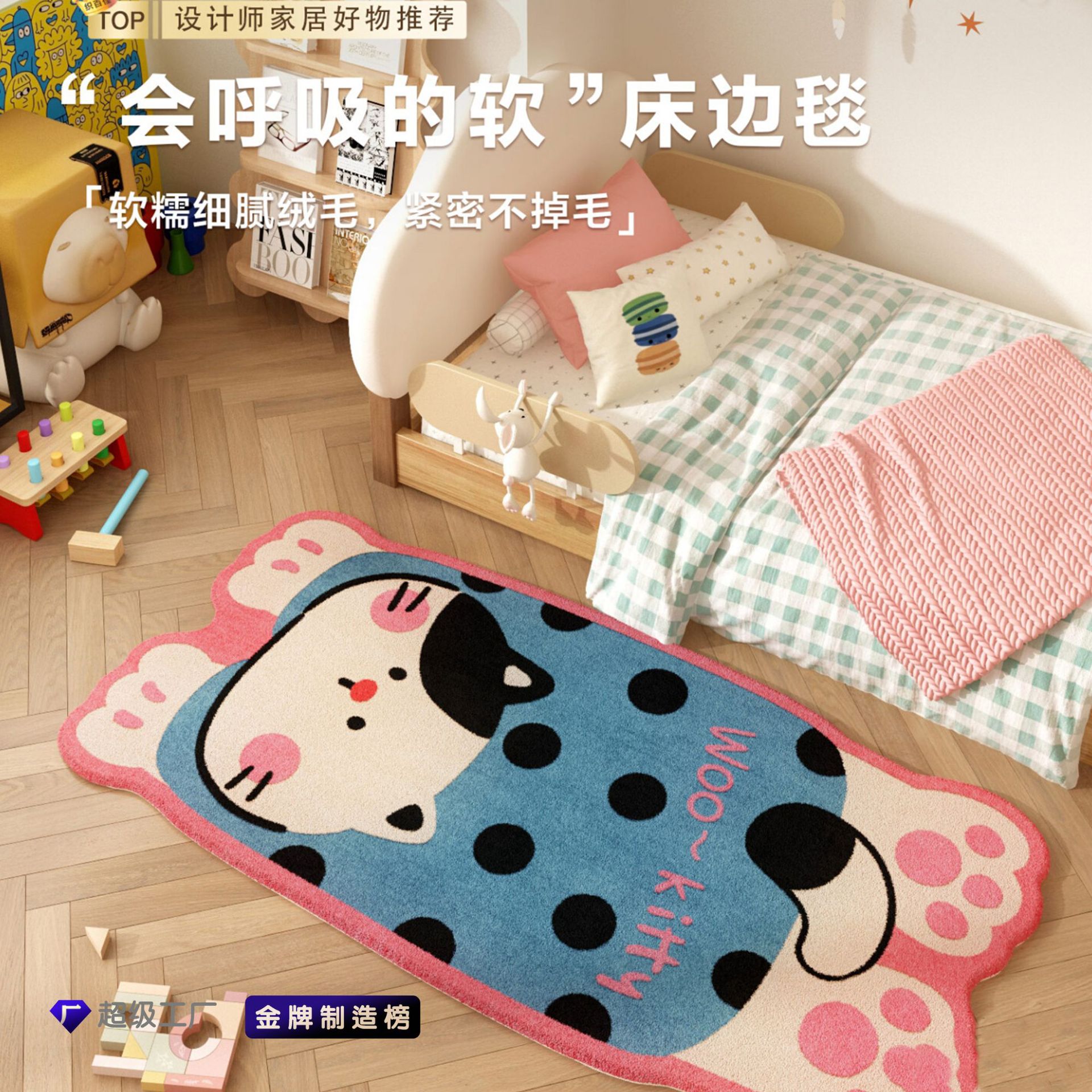 粉色卡通卧室床边地毯新款家用多巴胺儿童房地垫耐脏防滑隔音地毯