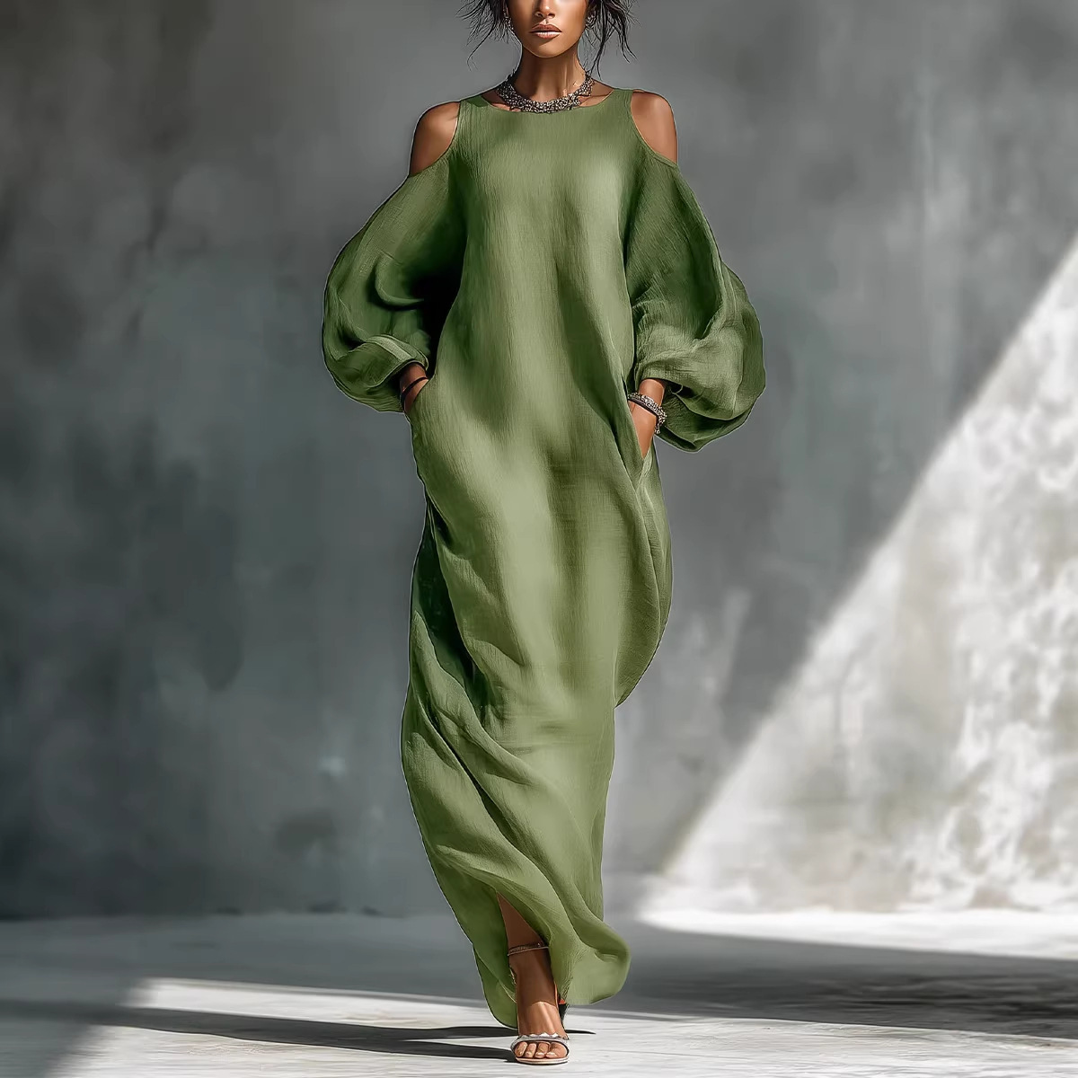 2026跨境欧美春夏新款高端女装长袖露肩长裙中腰套头款连衣裙