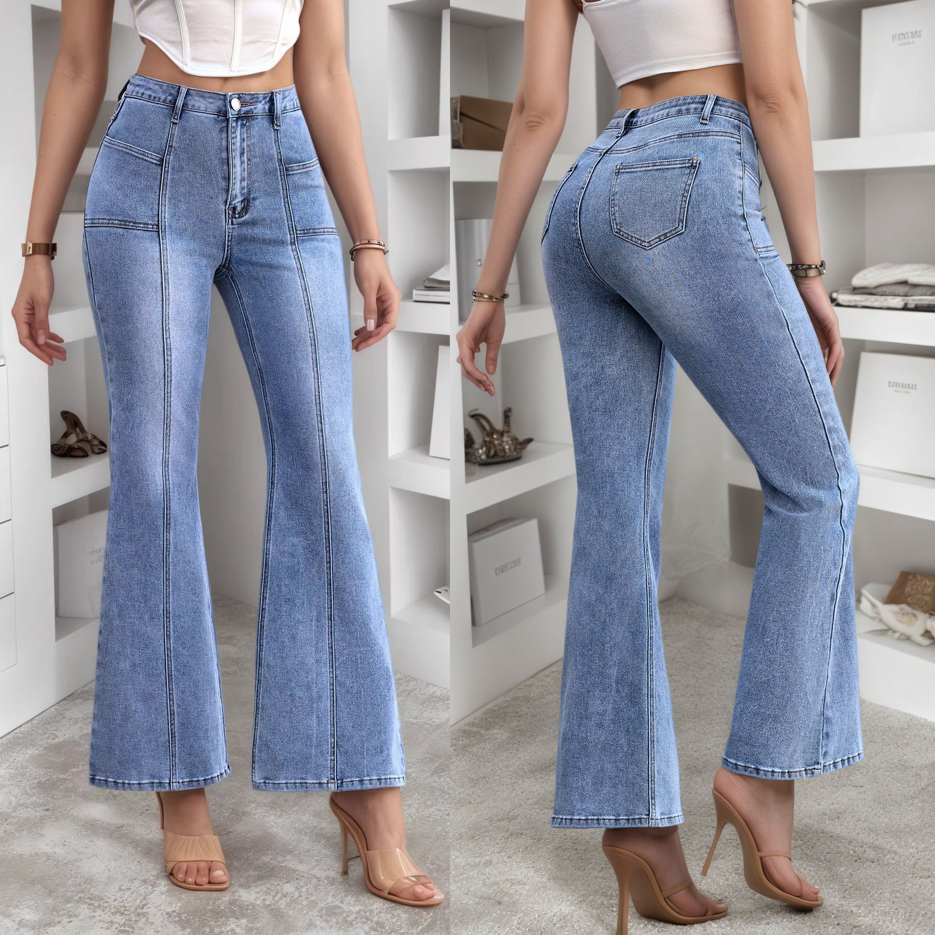 现货欧美爆款女装 时尚个性女式秋冬新款弹力修身牛仔喇叭裤