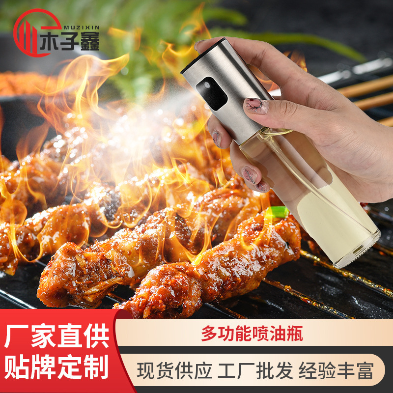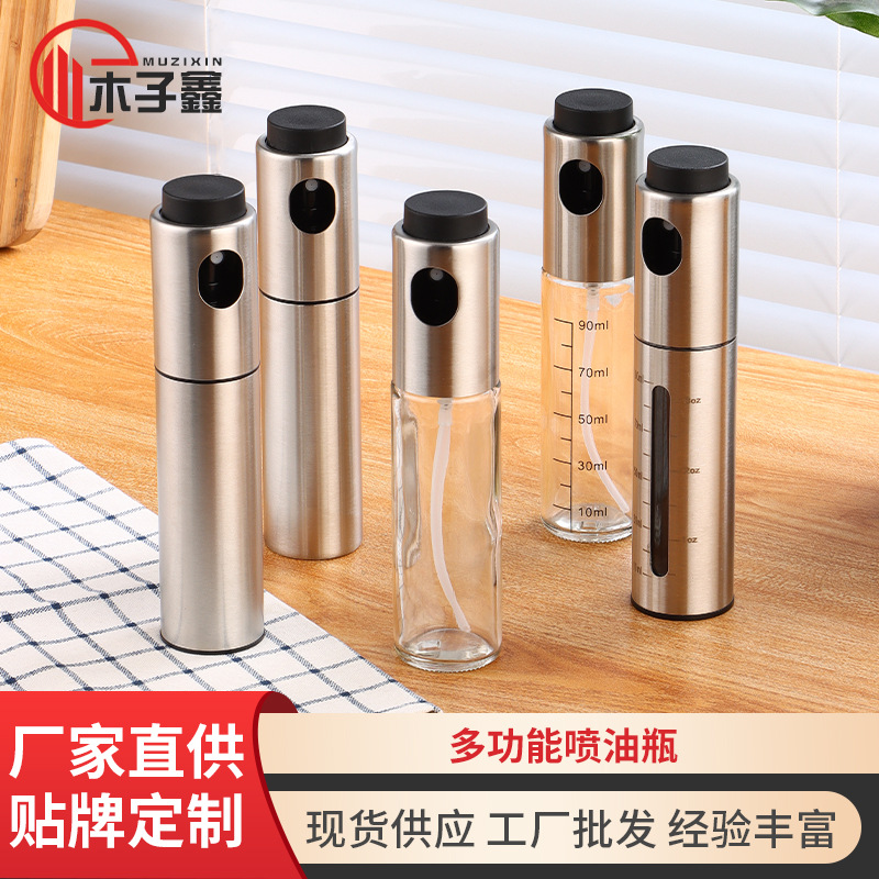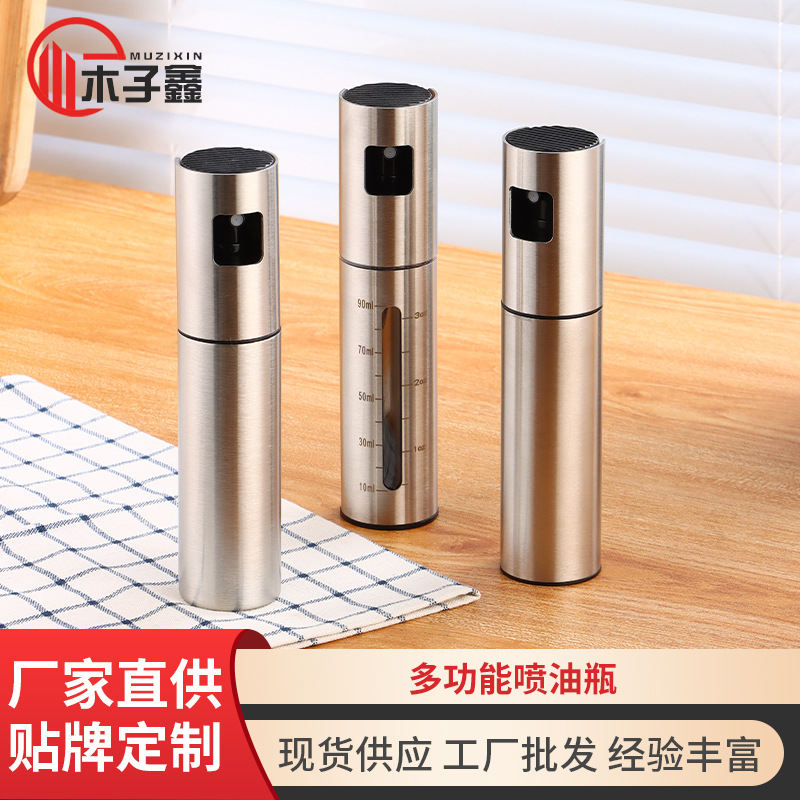 定制不锈钢喷油瓶带刻度烧烤喷油壶酱油喷雾瓶按压防漏厨房雾状