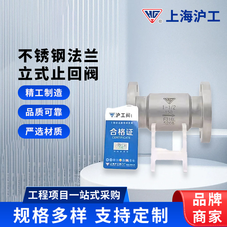 上海沪工阀门不锈钢立式止回阀H42W-16P/RL 法兰升降式单向逆止阀