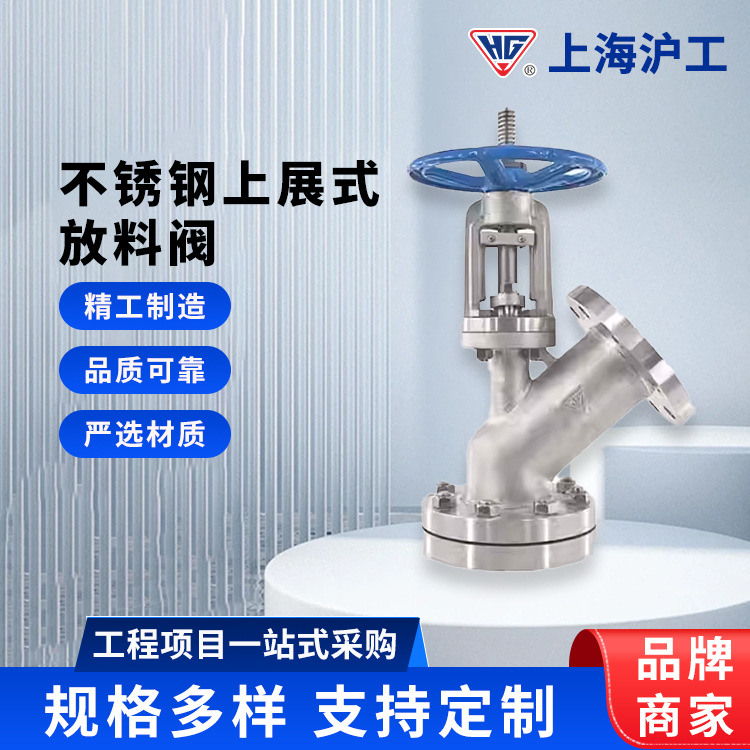 上海沪工阀门不锈钢上展式放料阀FLS45F-16P反应釜搅拌器卸料阀