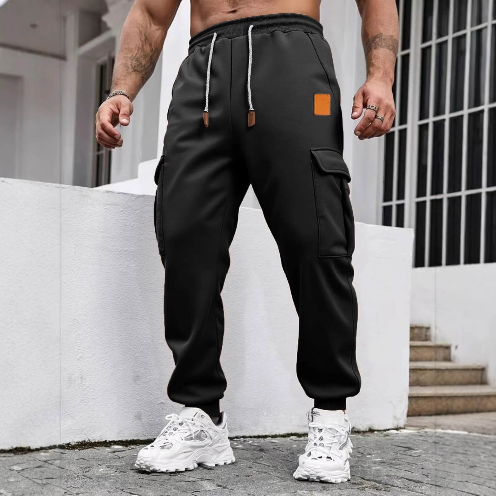 跨境热销新款秋冬训练工装休闲裤加绒长裤时尚多口袋运动卫裤男